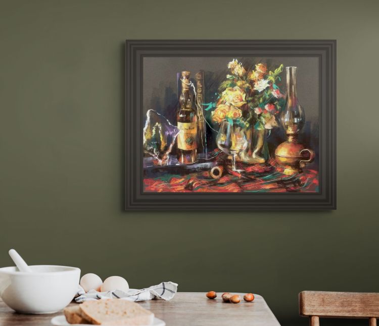 琥珀色的午後 <<回前頁 ARTSOIL PAINTING WATERCOLORPASTELPROJECT SHOP CONTACT 琥珀色的午後 陽光沈入杯中,如金色的午後,包裹著一場微醺的夢,在花影與餘暉間緩緩流動。 NT$38,000. (含框) Painting, Pastel 粉彩、沙卡紙Size: 65cm x 53cm BUY ※點擊BUY開啟商場頁面